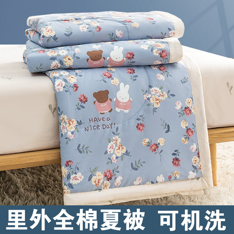 夏凉被纯棉可机洗空调被四件套里外全棉夏被夏季单人薄被子儿童