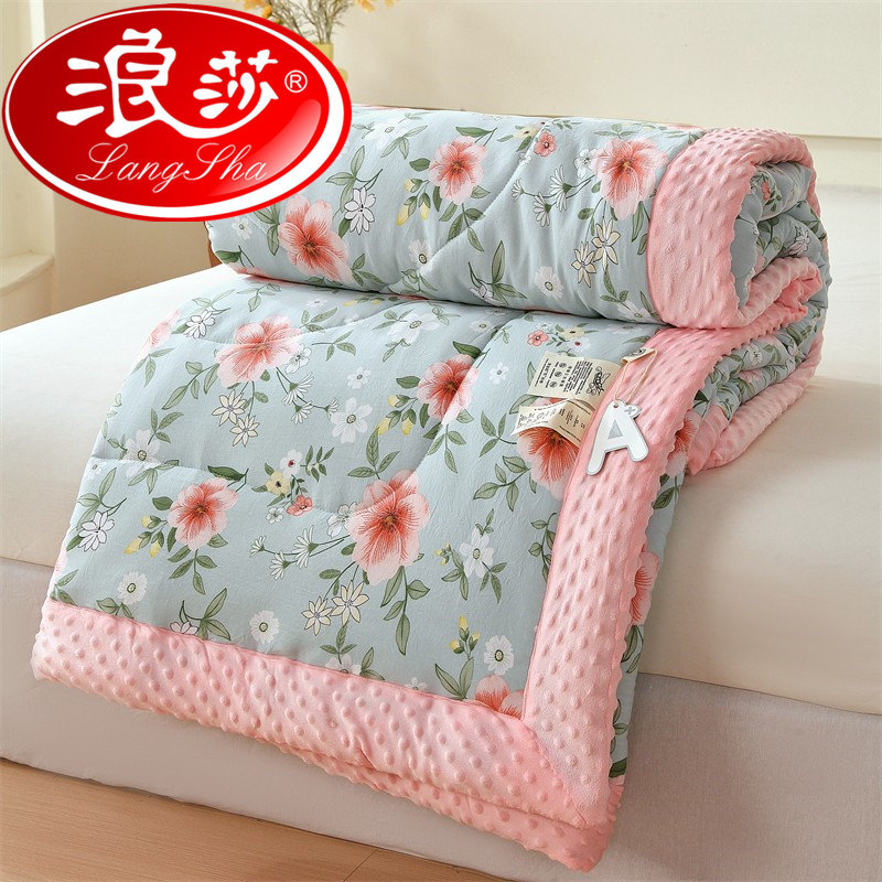 浪莎正品a类可机水洗一体豆豆被四季通用单双人儿童空调被春秋被