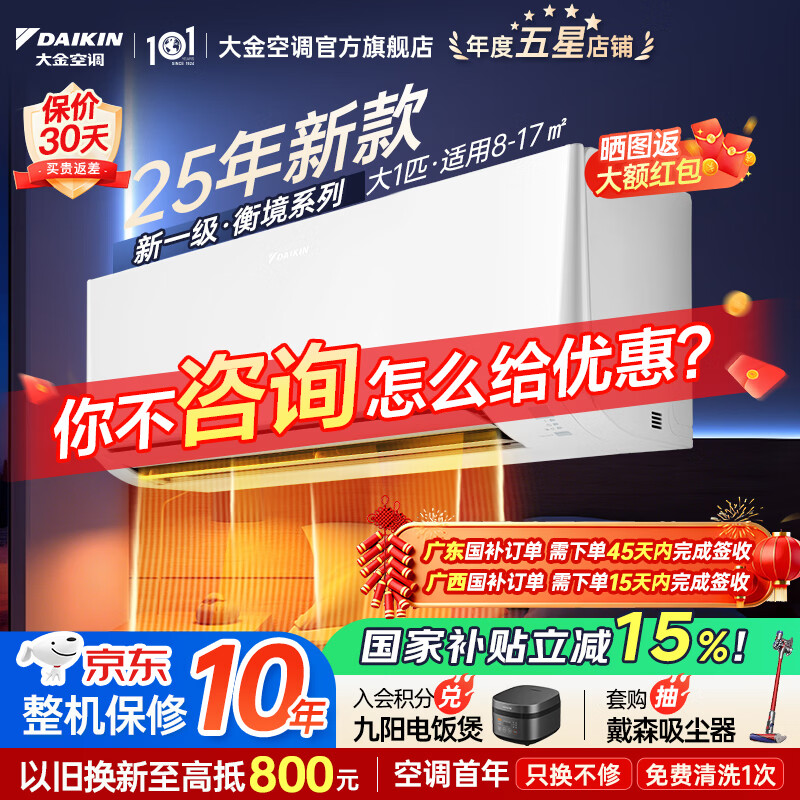 大金空调(DAIKIN)新一级能效 衡境系列 康达智控变频空调 2025新款小零境 挂机 以旧换新 国家补贴 衡境 大1匹 ATXE126ZC-W1白色