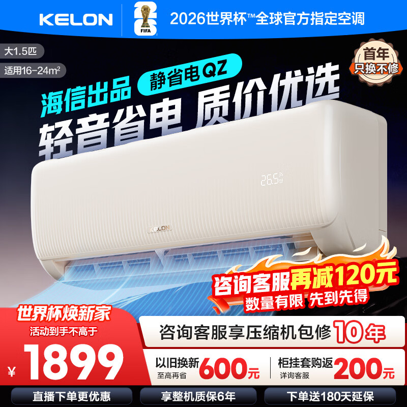 科龙(KELON)空调海信出品 大2匹/大3匹挂机 询单减200 静省电 新一级 大风量冷暖变频 壁挂式客厅商用以旧换新 大1.5匹 一级能效 手机智控+柔风舒适 下单享压缩机十年包修权益