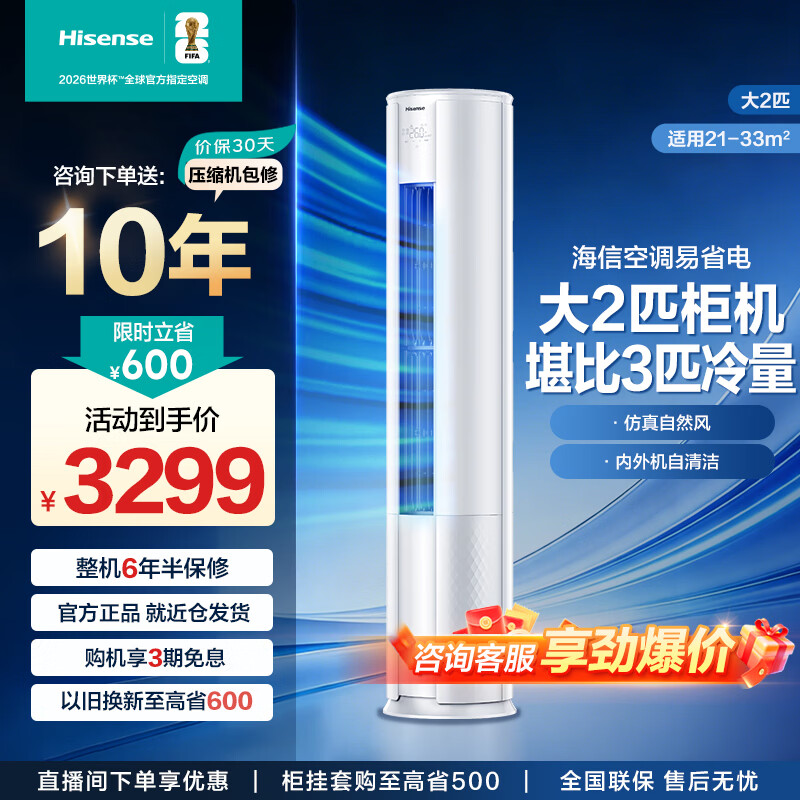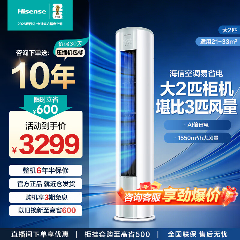 海信(Hisense)空调 大2匹/大3匹柜机 【咨询客服领优惠】 易省电 AI省电 速冷热 大风量 新一级 客厅立柜式 大2匹一级能效【爆款】50E80