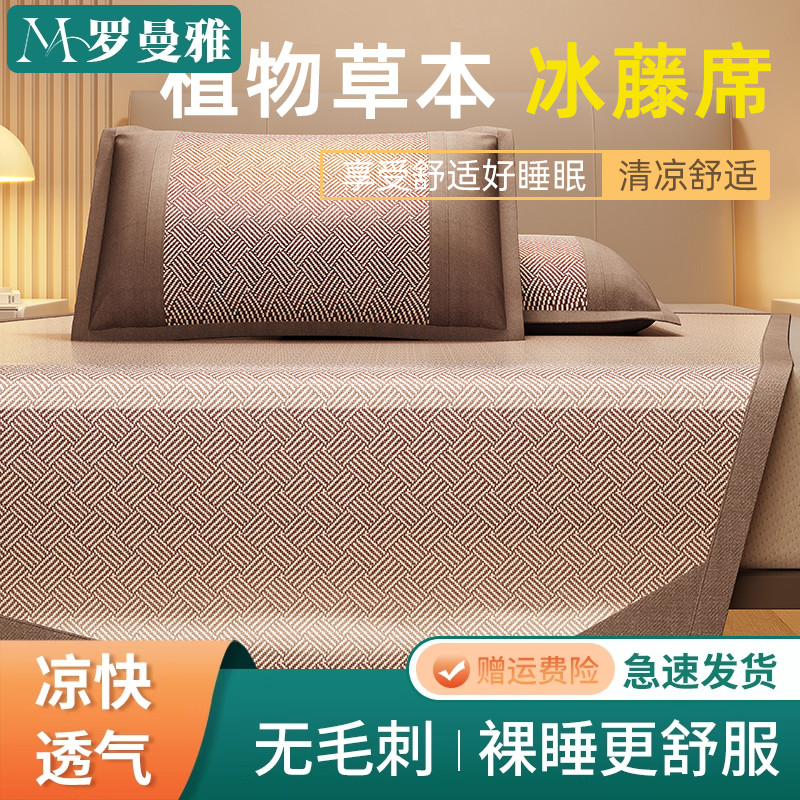 罗曼雅天然凉席冰丝藤席夏季2025新款家用宿舍可折叠空调水洗席子