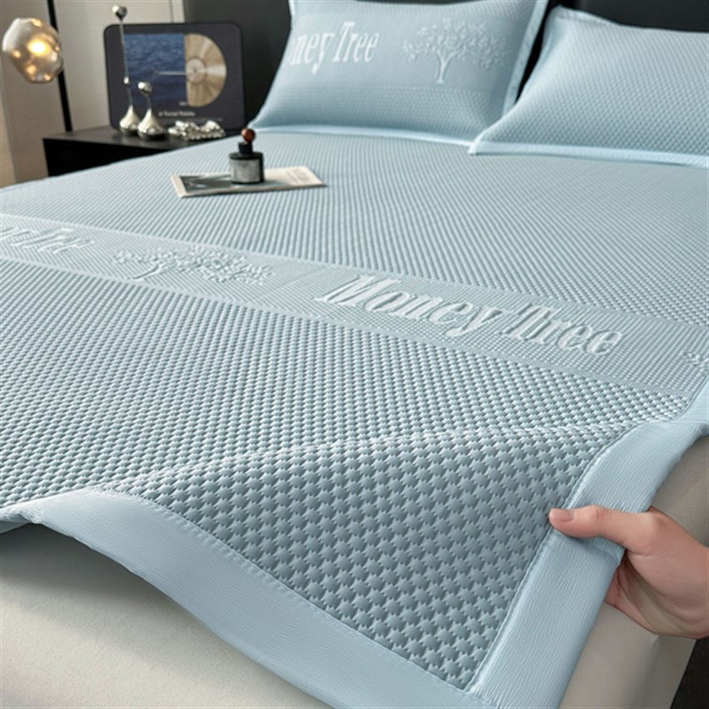 2025新款海洋云母丝冷感冰丝软凉席三件套可机洗凉感空调席床笠款
