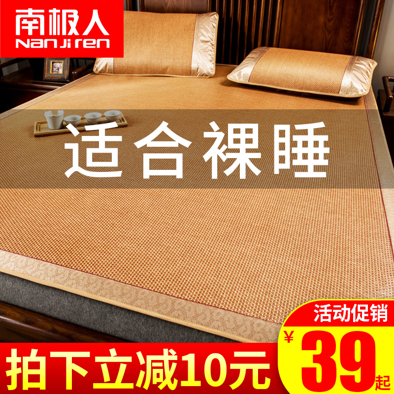 南极人藤席冰丝凉席三件套1.8m冬夏两用K可折叠草席子家用空调软