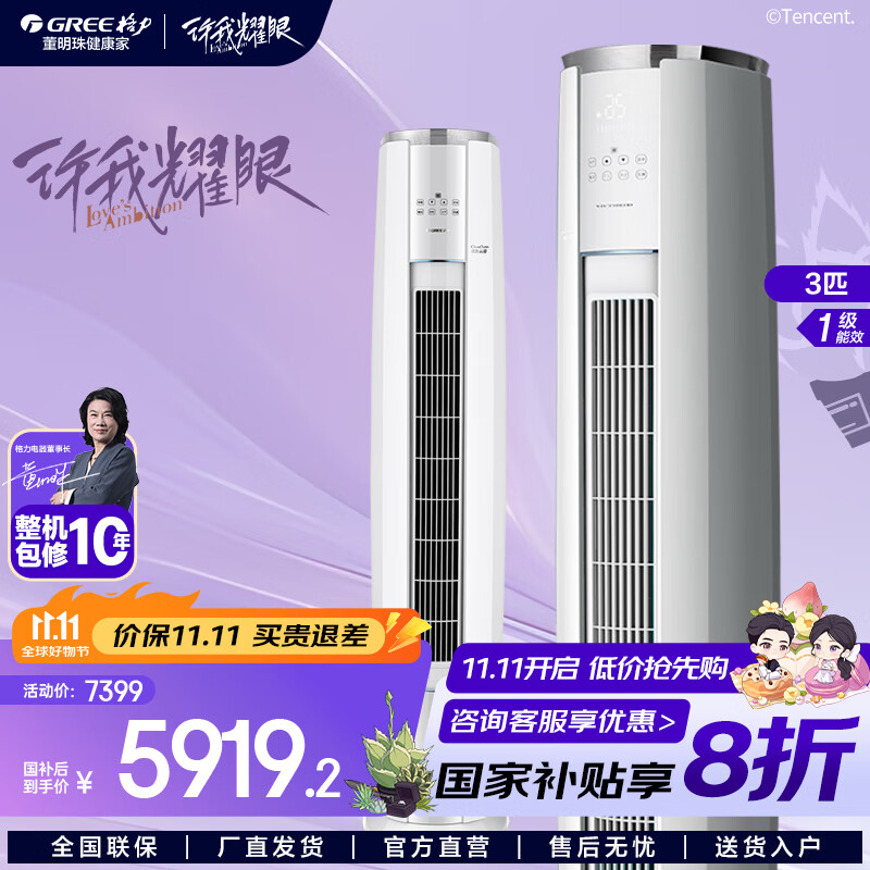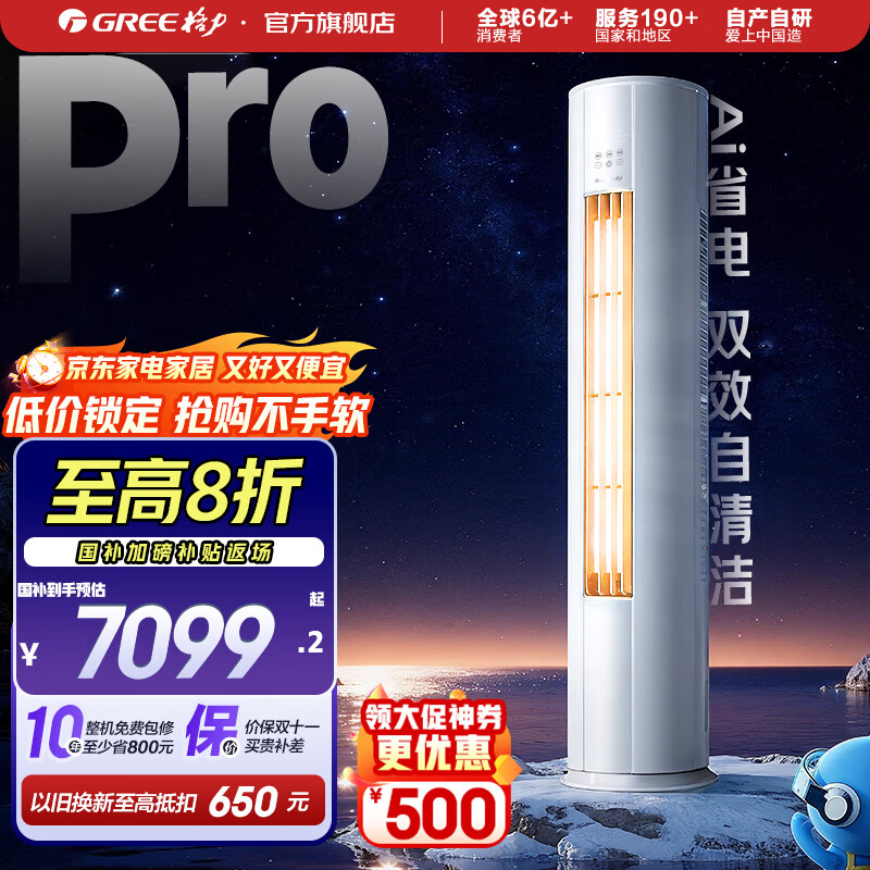 格力(GREE)空调柜机云锦三代Pro3匹柜机2匹一级能效变频冷暖独立除湿高温自清洁智慧物联客厅圆柱立式柜机 3匹 一级能效 云锦三代【经典热销】