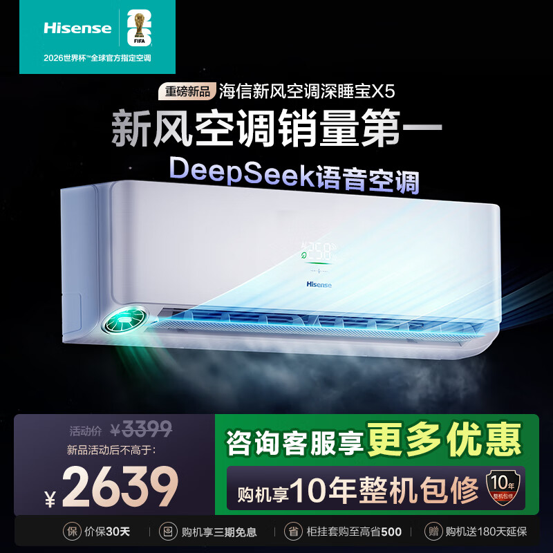 海信(Hisense)新风空调X5 大1.5匹挂机 增氧新风 AI省电 Deepseek语音智控空调 以旧换新 一级能效 重磅新品 大1.5匹 一级能效 35X5E1