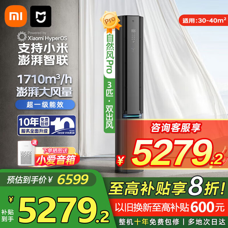 小米(MI)米家空调 3匹 双出风 自然风Pro 超一级能效 变频冷暖立式柜机 72LW-NA11/M1A1 3匹 一级能效 【新势力新品】 星缎银