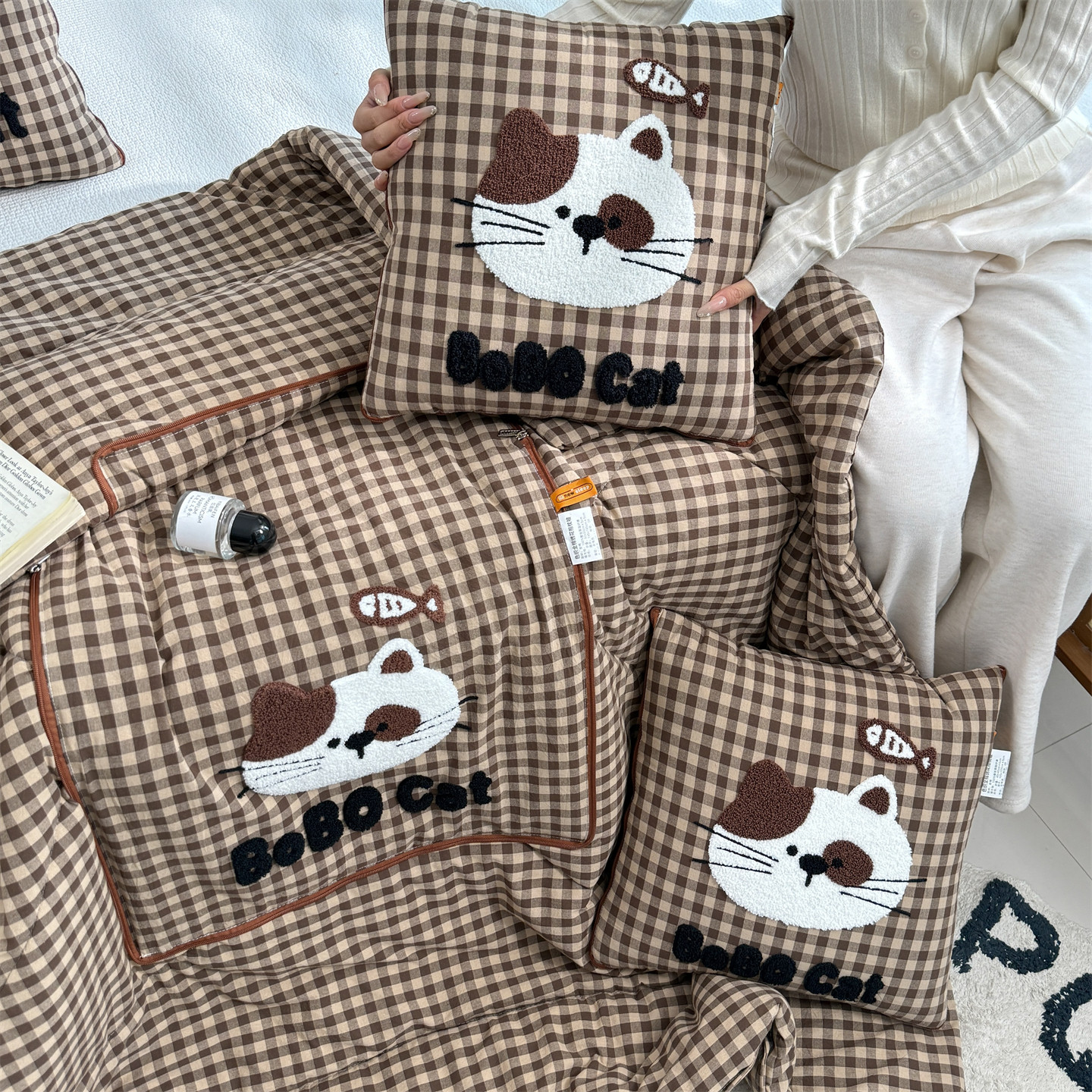 卡通格子抱枕被可爱猫咪汽车沙发两用靠垫学生宿舍午休空调被全棉