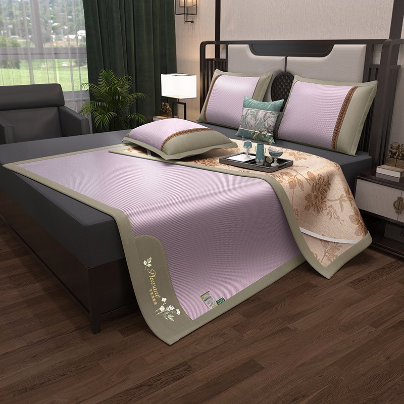 月光集【葡萄奶酥】夏季冰丝凉席三件套凉感可机洗可折叠空调软席