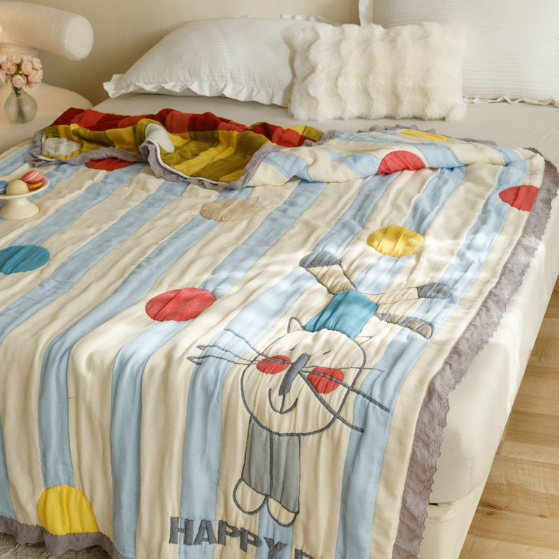公主风冰丝凉豆豆3D安抚凉w席夏凉被空调被四件套夏季花边床裙软
