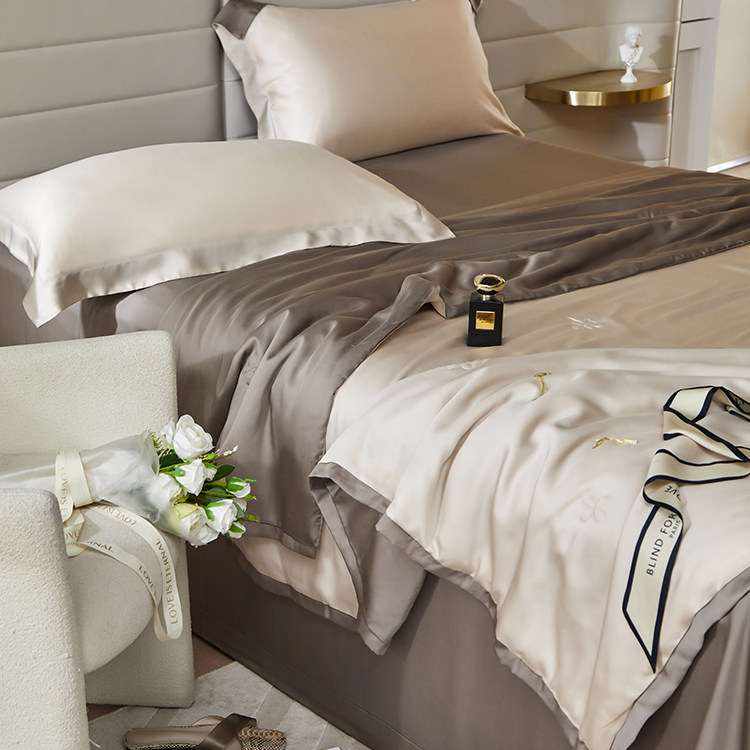 夏季纯色80支天丝夏凉被四件套简约可机洗丝滑冰丝空调被薄被子