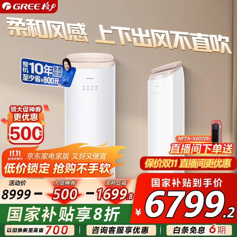 格力(GREE)空调3匹 王者(同京致)新1级变频冷暖上下出风不直吹 恒温立体送风客厅空调立式柜机 家电补贴20% 3匹 一级能效 王者柜机【风不吹人】
