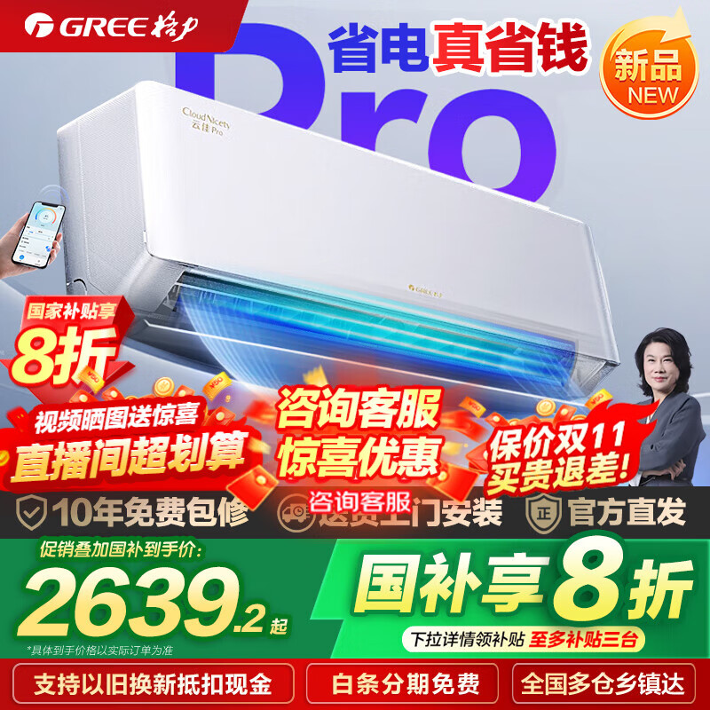 格力(GREE)空调 云佳pro 1.5匹 新一级能效 变频冷暖 节能省电 自清洁 壁挂式卧室挂机 家电补贴20% 以旧换新 大1匹 一级能效 丨云佳PRO 新品上市