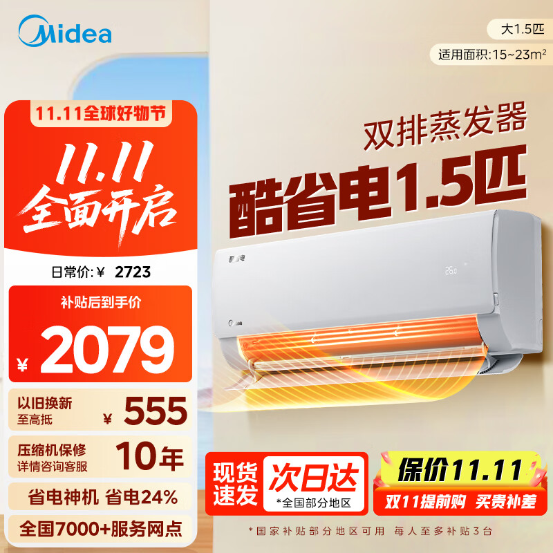 美的(Midea)酷省电pro大1.5匹 新一级能效空调1匹变频冷暖挂机8折国家政府补贴20%家电家用壁挂式全新1Q 大1.5匹 一级能效 酷省电 省电25%