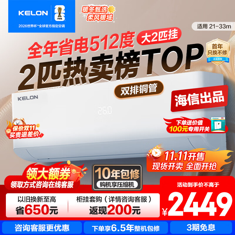 科龙大2匹空调挂机 包安装【咨询减200】新品爆款超一级能效智能变频冷暖家用壁挂式挂机大风量大2匹/p 大2匹 一级能效 50QS【店铺爆款新品 享补贴】