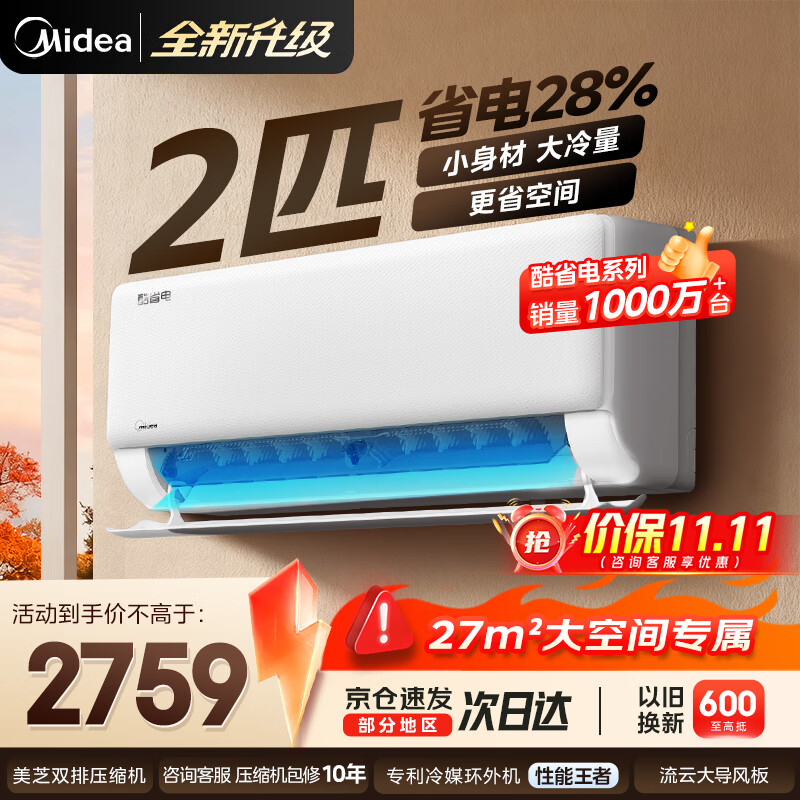 美的(Midea)空调挂机 2匹酷省电 新一级能效变频冷暖 节能省电卧室空调 壁挂式客厅 以旧换新家电国家补贴20% 2匹 一级能效 酷省电 节能28%