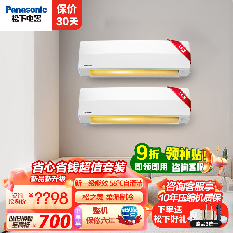 松下(Panasonic)空调套装 松之舞1.5匹新一级能效省电挂机 直流变频强智冷暖防直吹 独立除湿 自清洁 【两居室】 1.5匹HZ35K410Q 两套