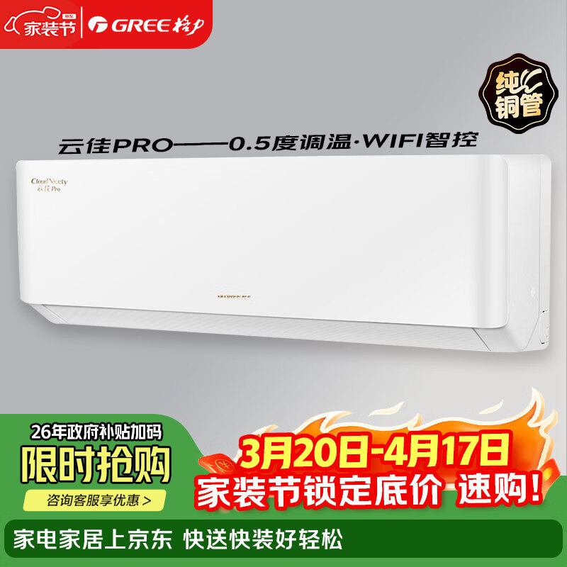格力(GREE)云佳Pro 大1匹/1.5匹 一级能效 变频冷暖 挂机空调 卧室 WIFI智控 0.5度控温 云佳Pro 大1.5匹 新一能效