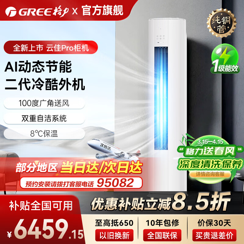 格力【全国可用国家补贴】空调柜机云佳pro 3匹/2匹新一级能效圆柱式变频冷暖家用卧室客厅以旧换新 云佳Pro 一级能效圆柱式 3匹 适用【30-45㎡】 皓雪白