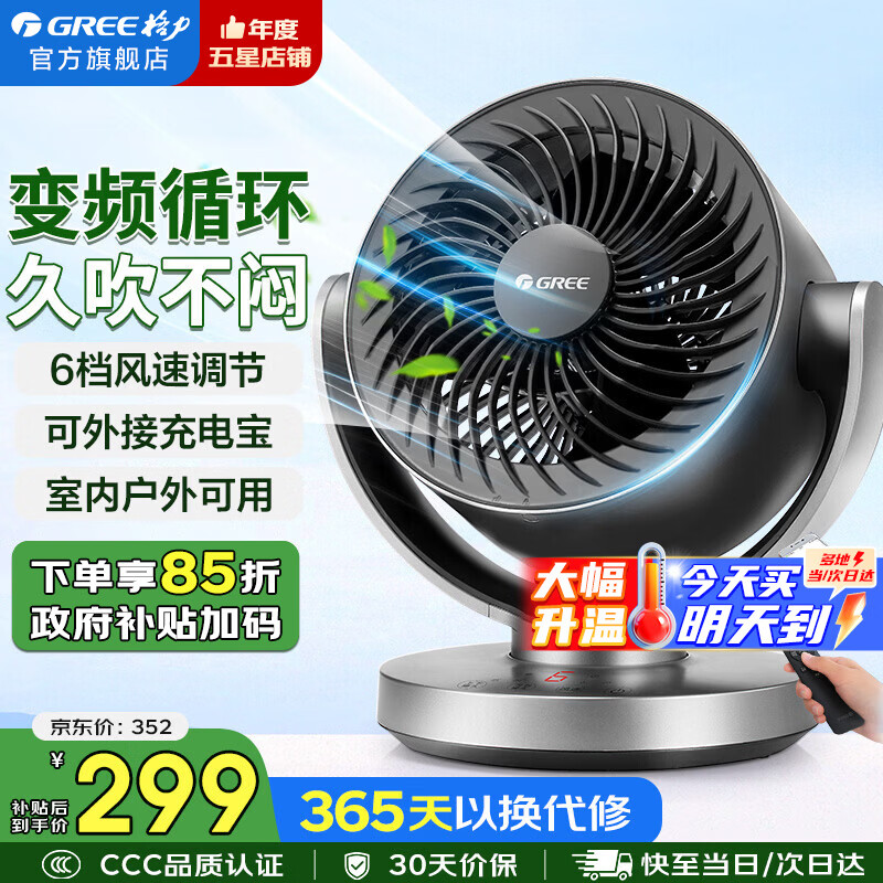 格力(GREE)家用卧室台式节能大风量涡轮空气循环扇办公遥控智能变频低燥摇头对流空调伴侣循环电风扇 FXTZ-1507Bg3