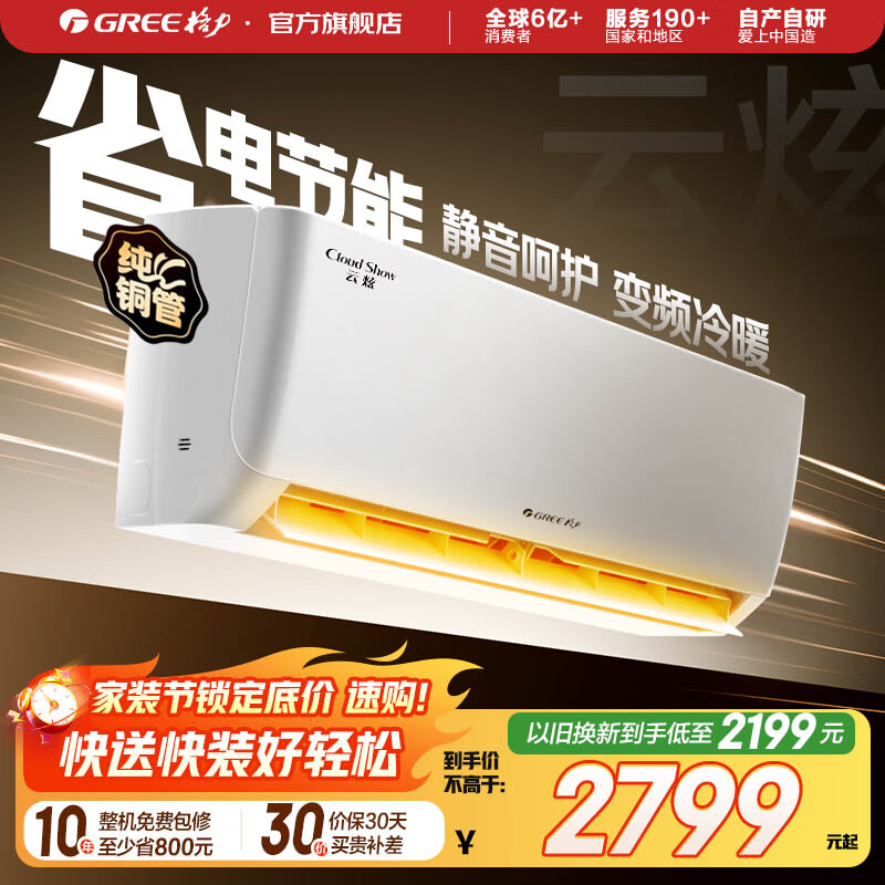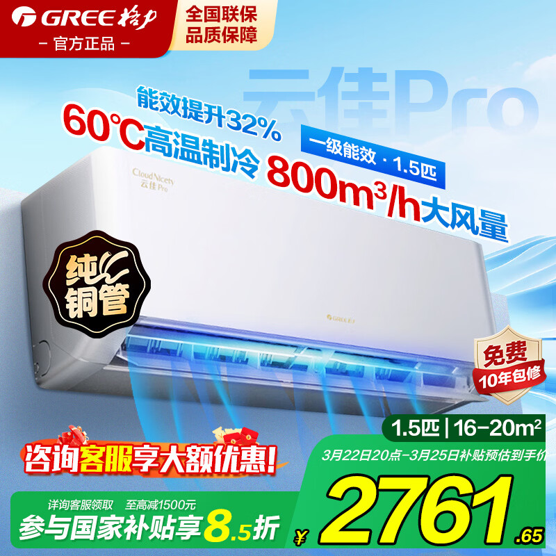 格力空调1.5匹一级能效国家补贴云佳pro挂机变频冷暖以旧换新悦省电节能家用卧室上门安装官方正品 1.5匹 云佳pro【纯铜管】 一级能效