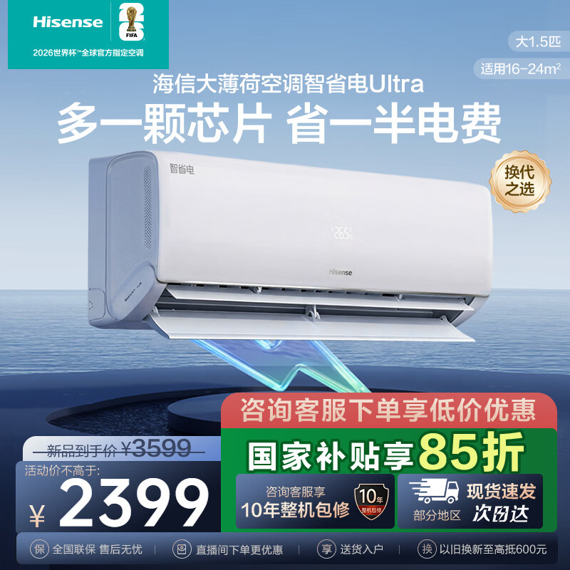 海信(Hisense)大薄荷智省电Ultra AI省电 双翼定制风 新一级能效补贴15%空调挂机KFR-35GW/A330UPro-X1 智省电 1.5匹 一级能效ultra