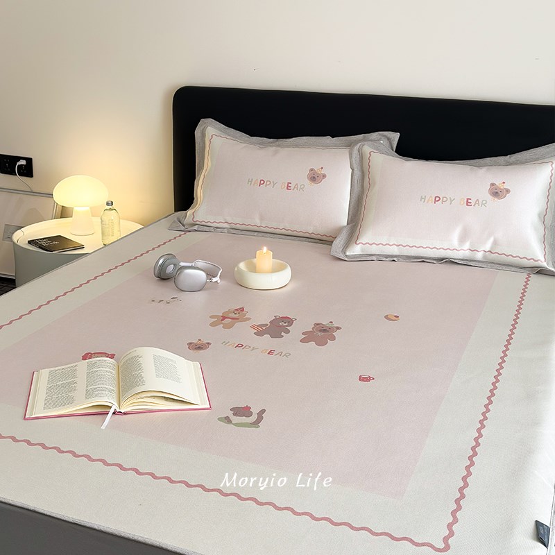 木悠卡通数码印花夏季凉感冰丝凉席三件学生宿舍1.2m空调软席子