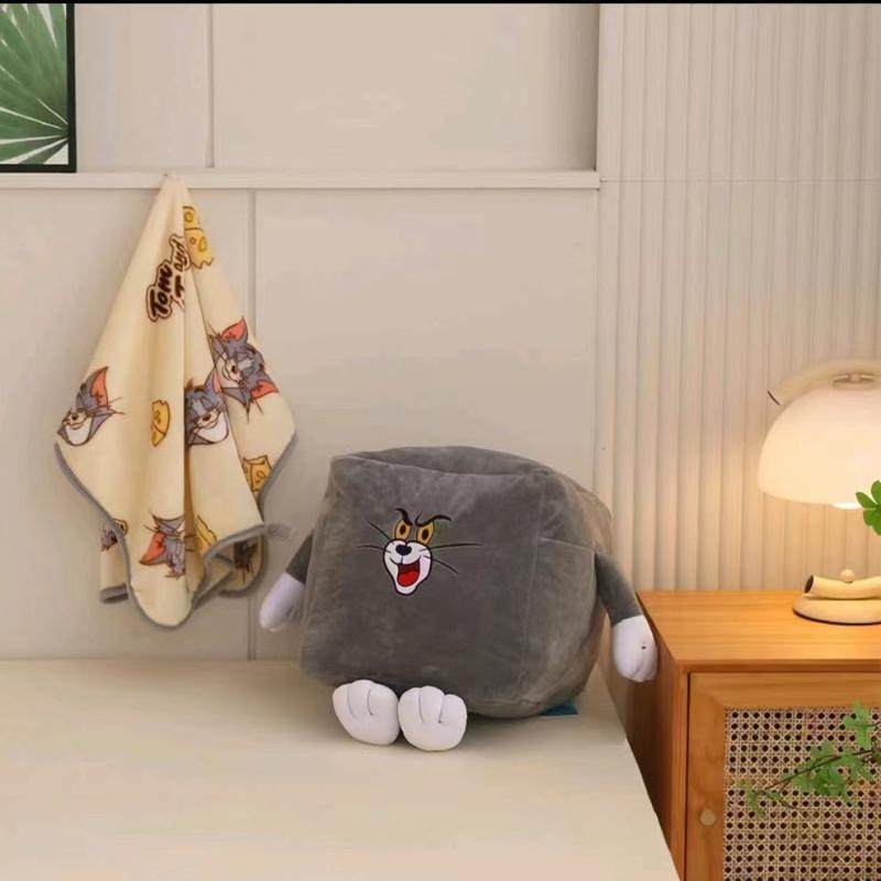 TOM&JERRY 猫和老鼠毛绒玩具靠枕抱枕空调毯毛毯2合一 新年款毛毯