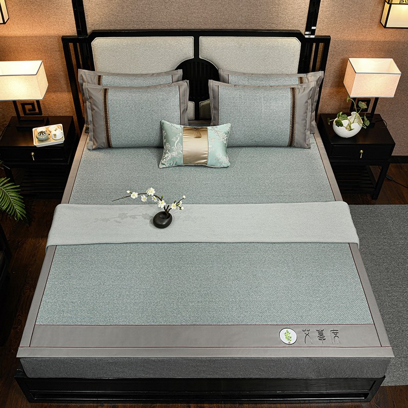夏天高端艾草冰丝席n藤席凉席三件套空调席子可水洗学生宿舍单双