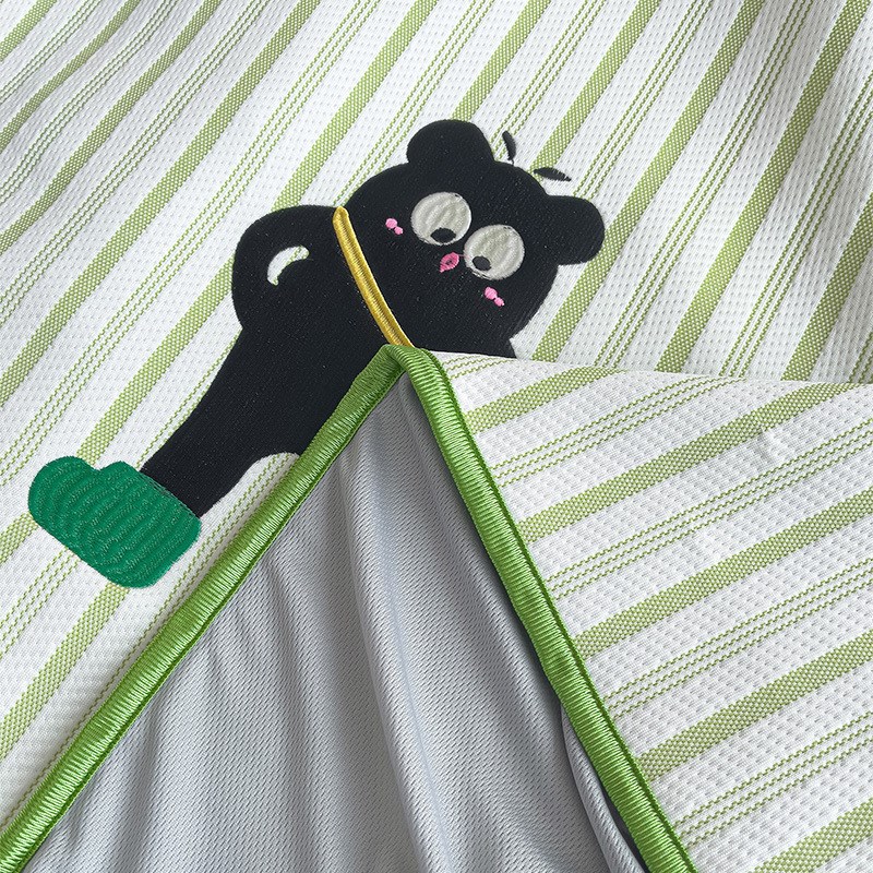 2025新款A类凉豆豆提花条x纹卡通刺绣床笠席三件套可水洗空调席