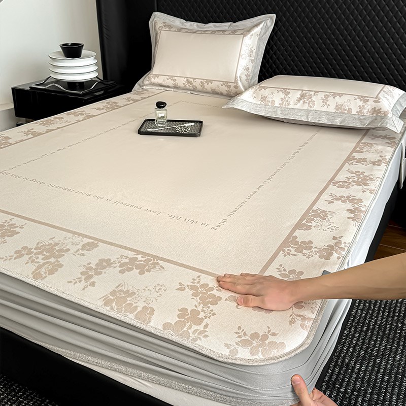 轻奢提花夏季裸睡冰丝凉席三件套可水洗凉L感空调软席子单双人折