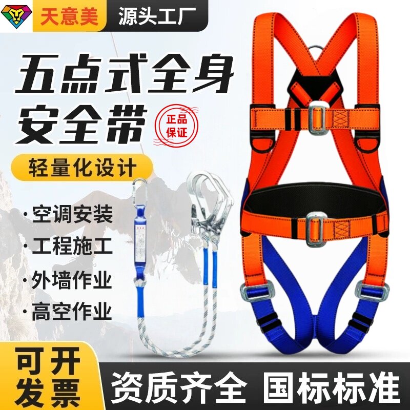 天意美涤纶五点式大号安全带欧式新国标全身缓冲高空作业空调安装