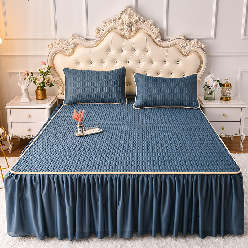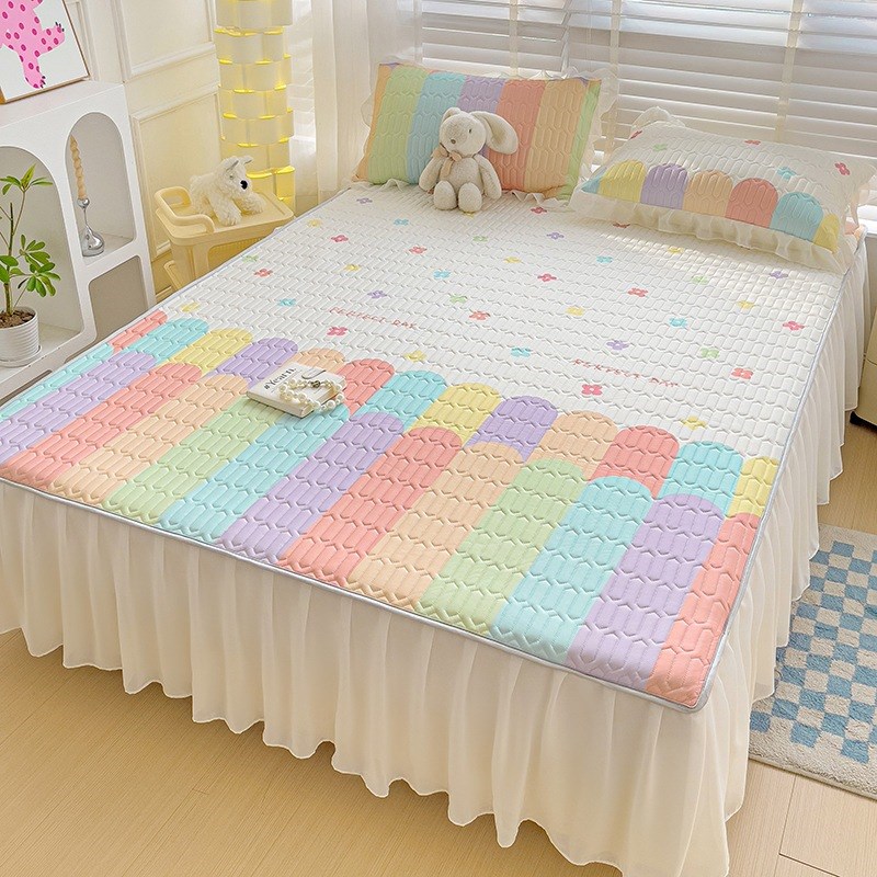 加厚凉感丝床裙款乳胶凉席三件套可机I洗组合夏凉被空调被四件套