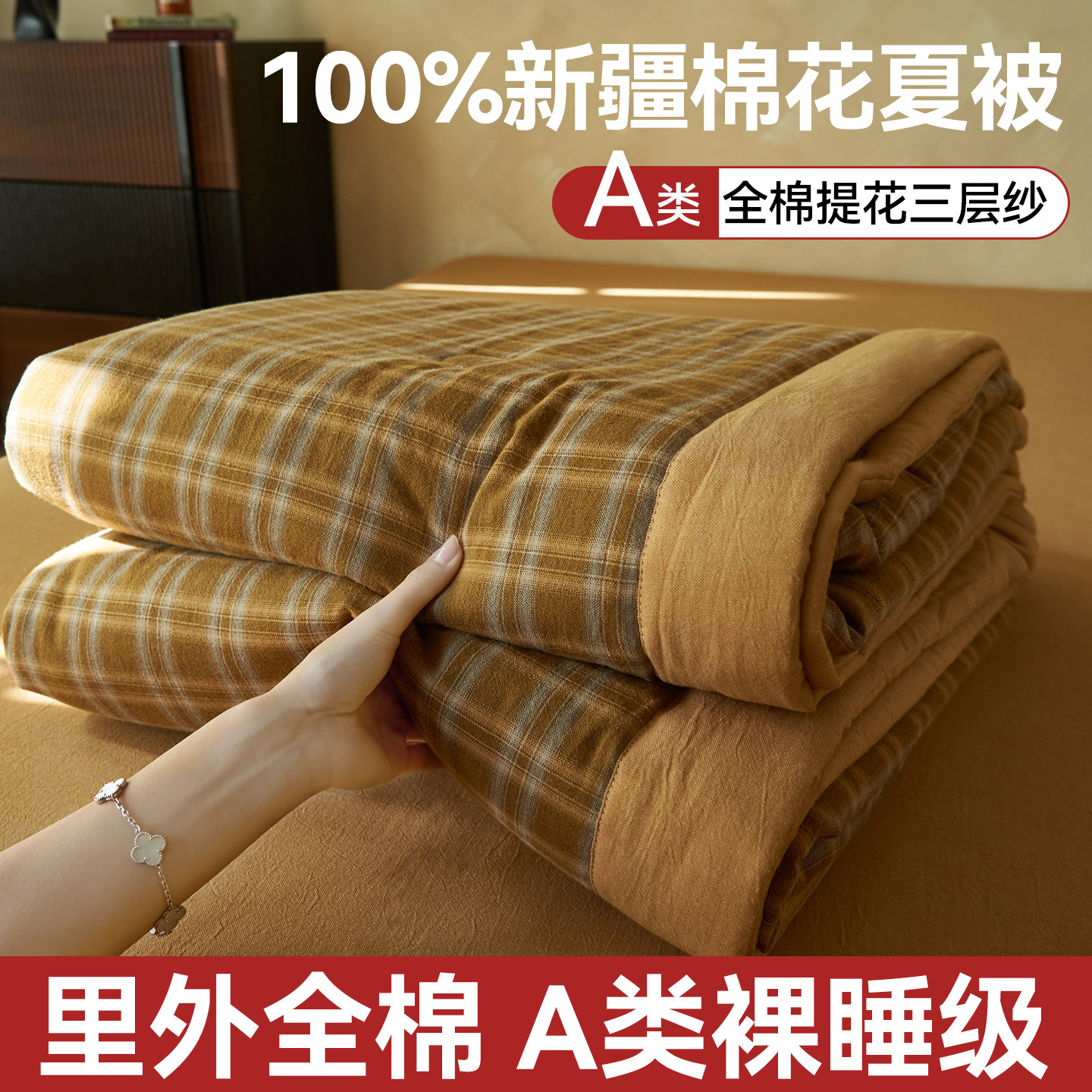 2026新款全棉三层纱夏被高级感纯棉空调被新疆棉花被可机洗夏凉被
