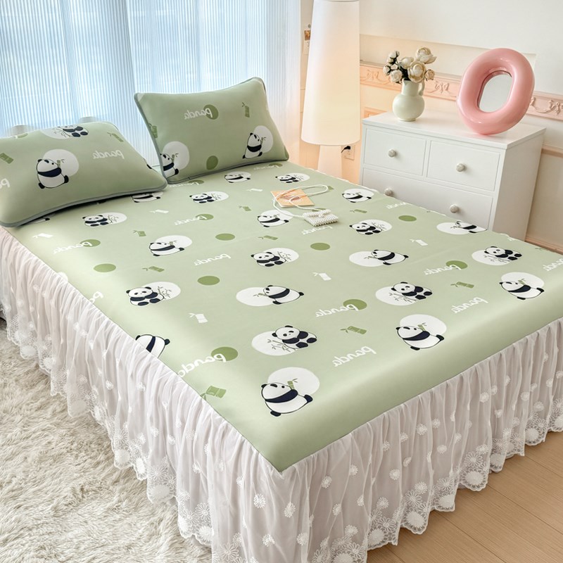 夏季A类卡通儿童冰丝席凉席三件套床裙款可机洗蕾丝床罩空调软席