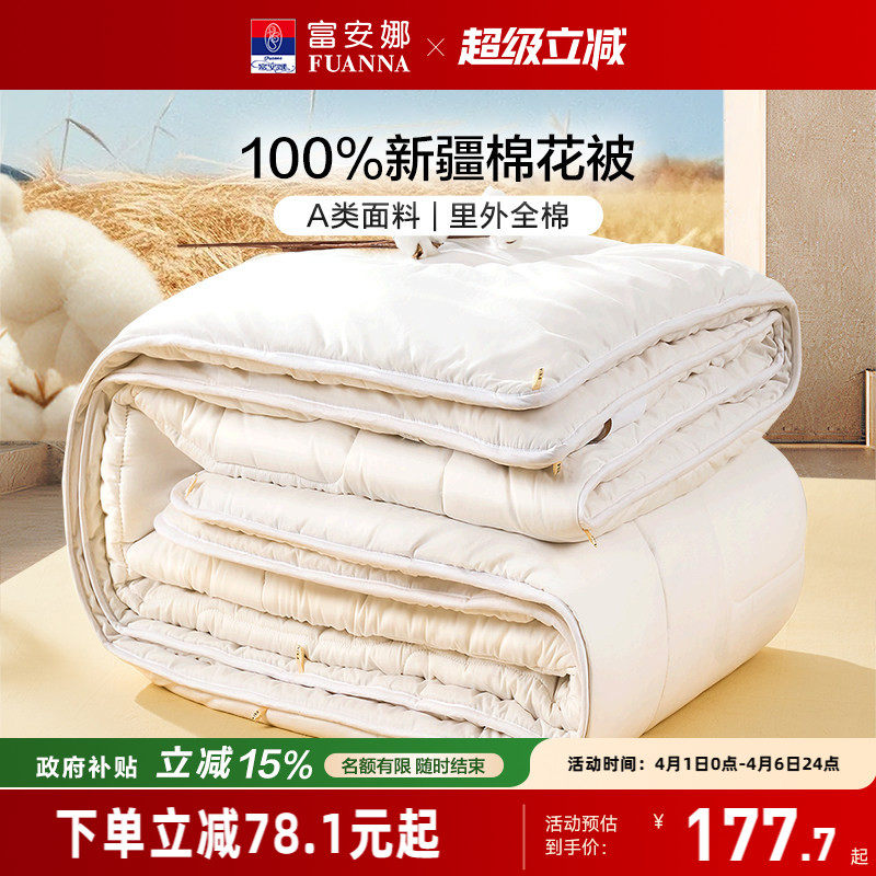 富安娜新疆棉花被全棉四季被子纯棉絮空调被芯春秋被褥保暖冬被
