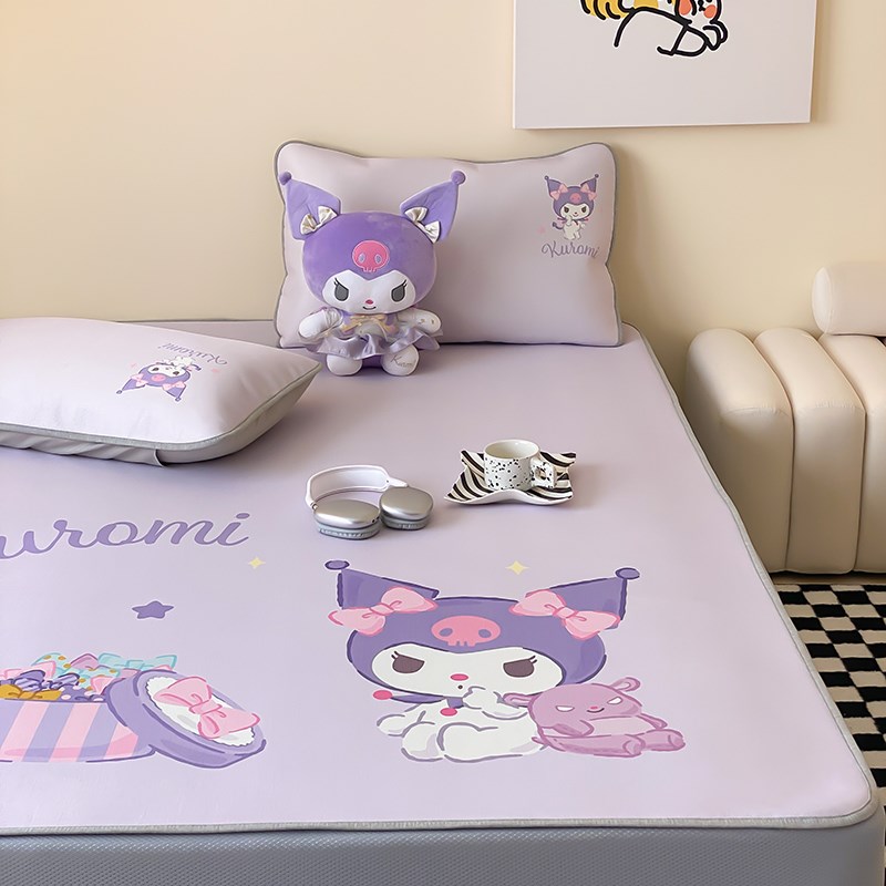 三丽鸥库洛米夏季凉席三件u套卡通风可机洗凉垫空调席软席子可折