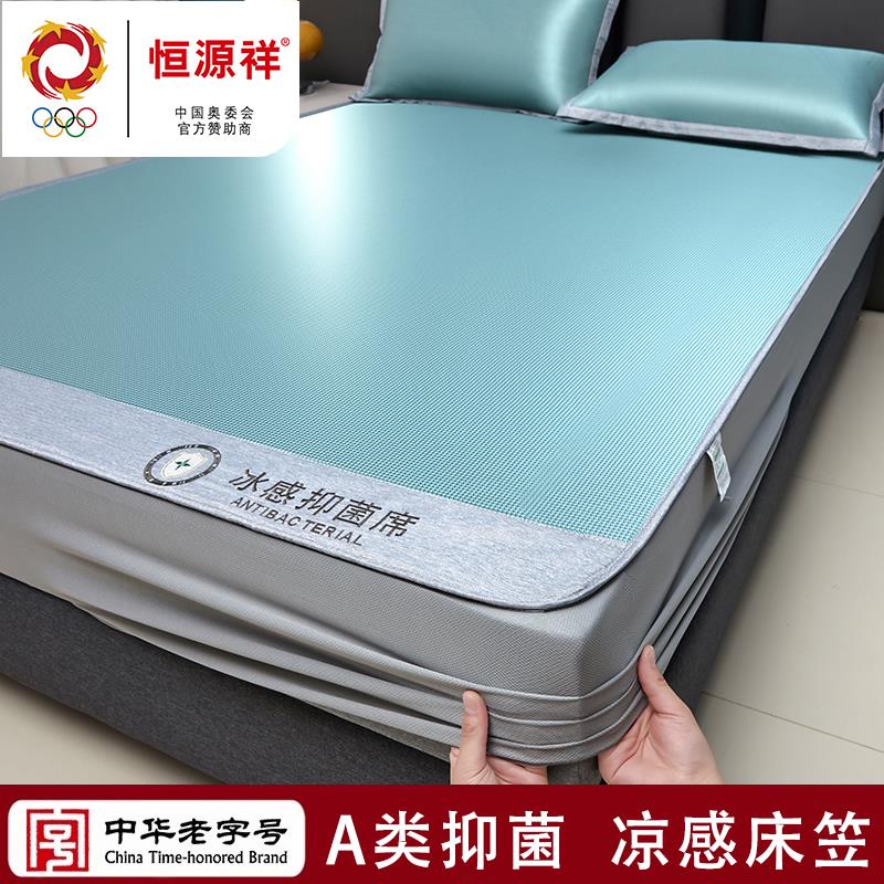 恒源祥夏季冰丝凉席三件套2025新款可机洗夏天空调软席子床笠款