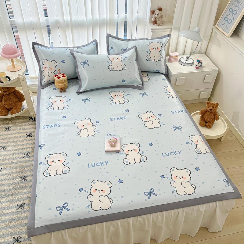 夏季冰丝凉席三件套可机洗学生宿舍单人床单空调S床垫软席子床笠