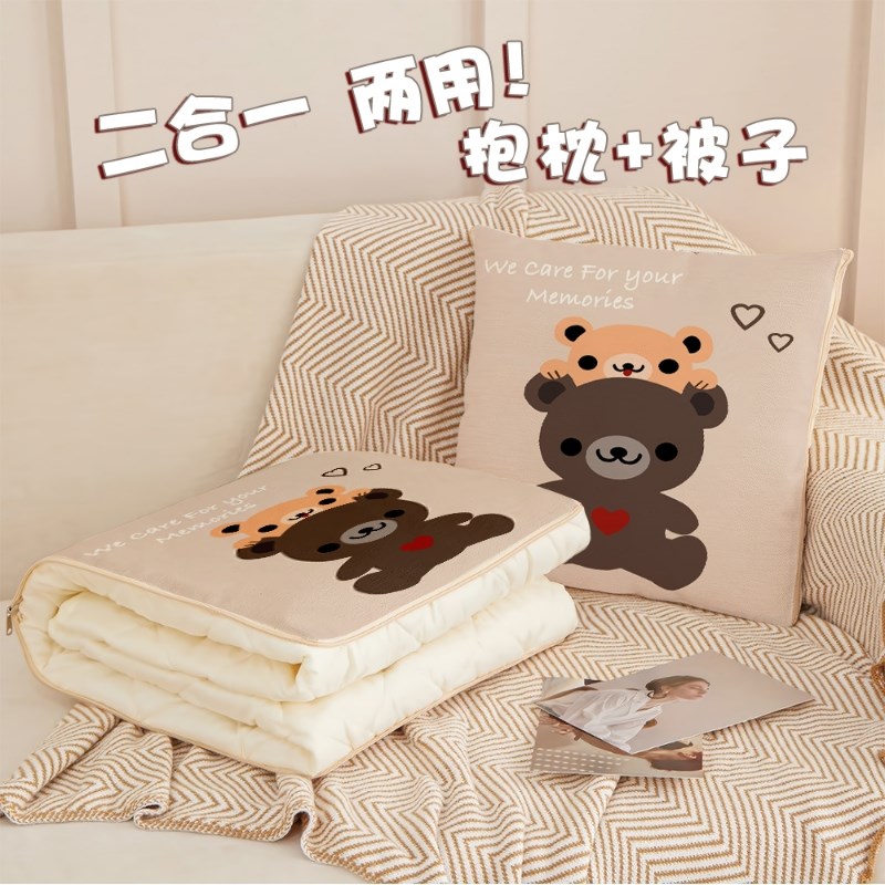 夏凉被全棉抱枕毯子夏被空调被办公室午睡毯Q沙发毯抱枕被子两用