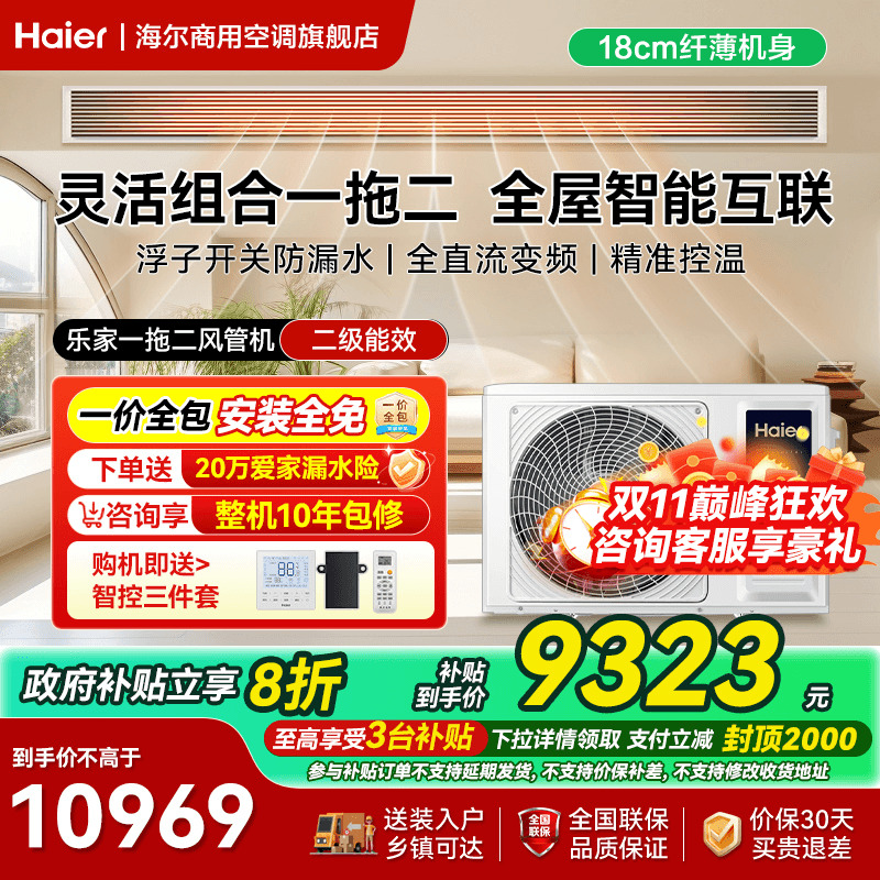 国家补贴】海尔乐家3匹一拖二风管机空调家用中央空调官方旗舰店