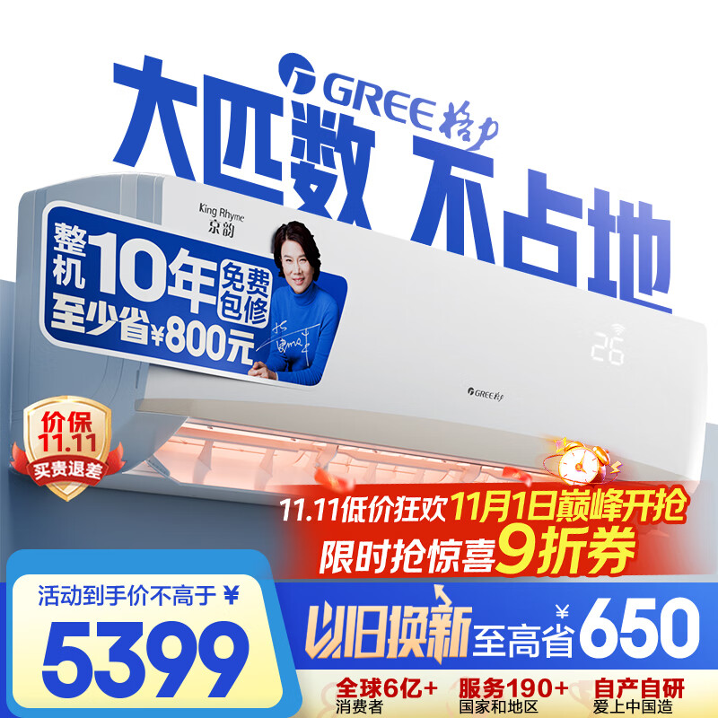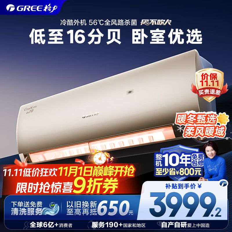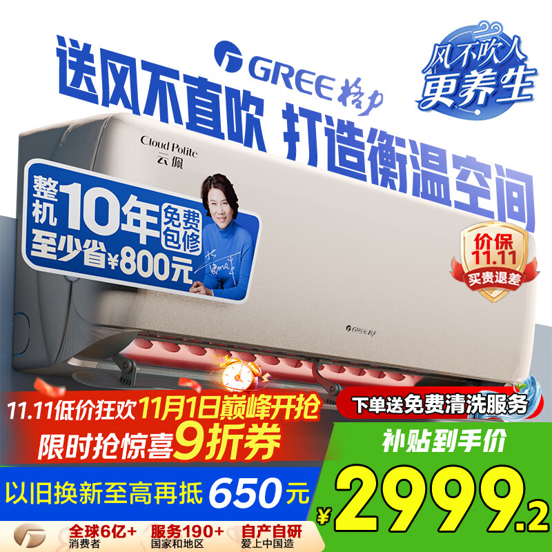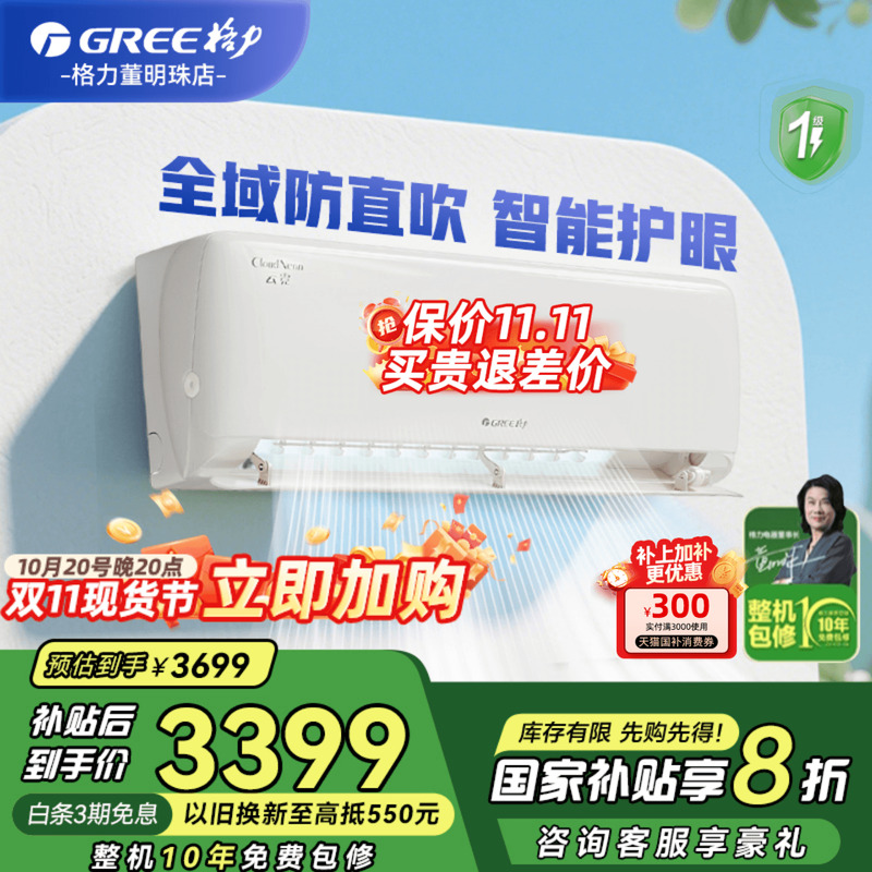 【国家补贴】格力空调新一级能效正1.5匹冷暖智能空调挂机云霓