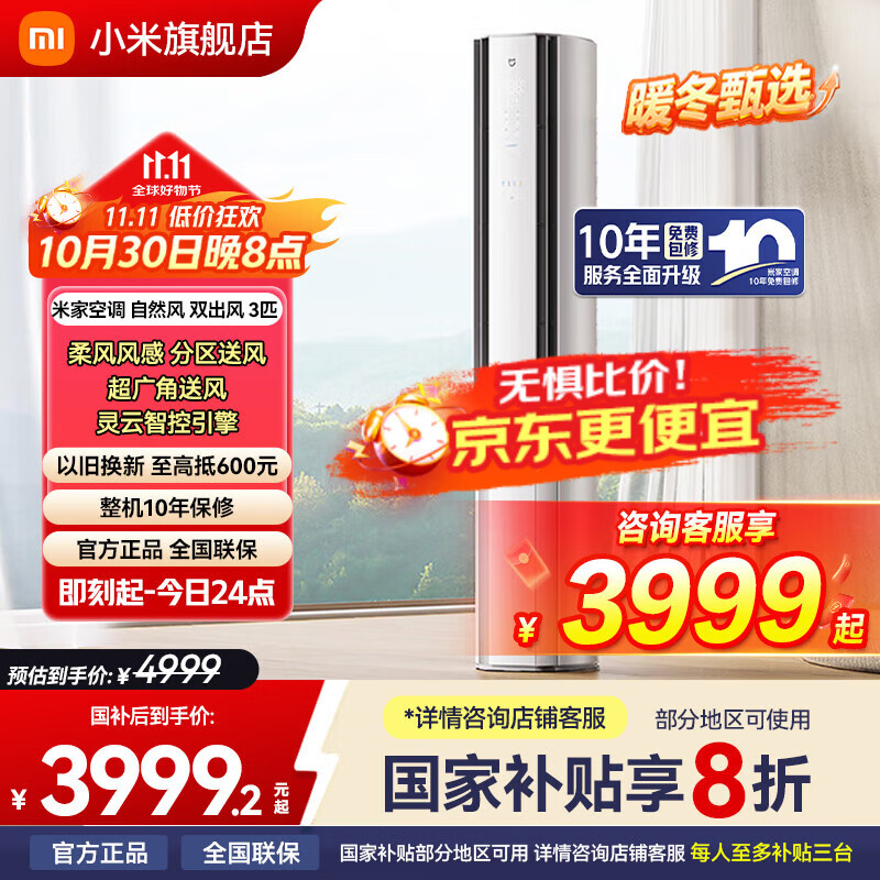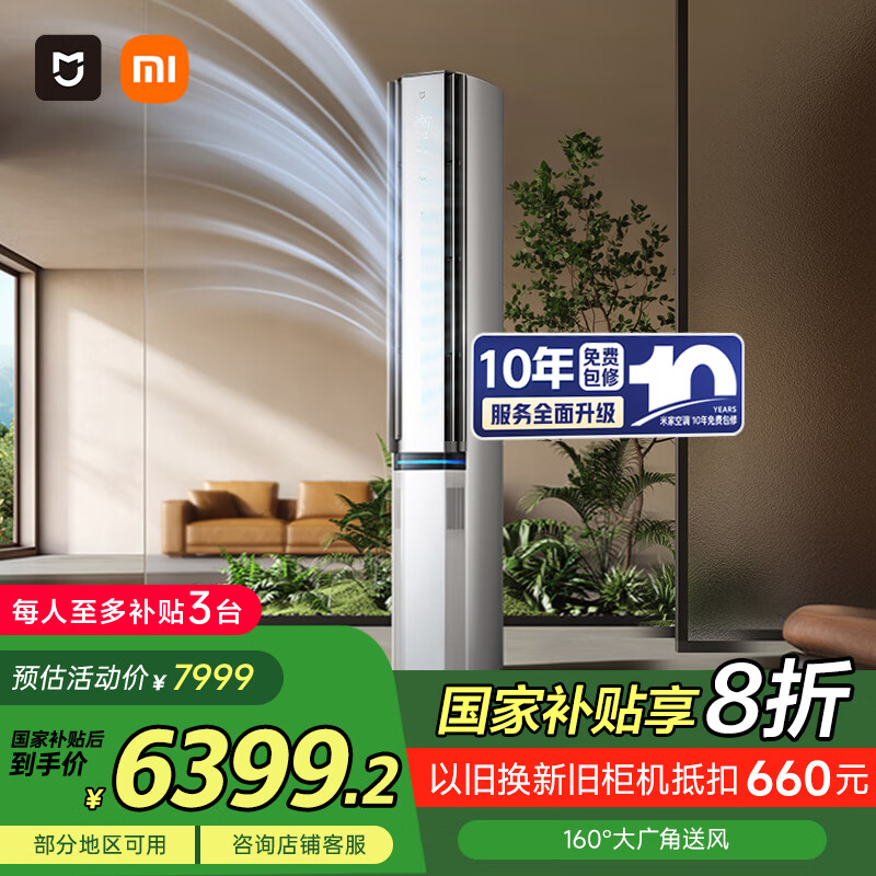 小米(MI)米家 3匹 新风Pro 双出风 健康 立式空调72LW-NA11/F1A1(W)【国家补贴20%】整机十年质保