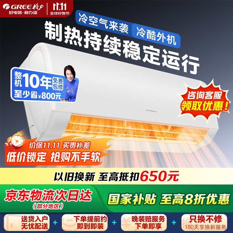 格力(GREE) 2匹京韵 1级能效变频 壁挂式客厅商铺挂机省电空调KFR-50GW/NhKe1BAj 国家补贴 凡人修仙健康空调