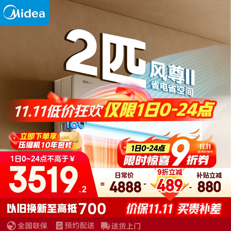 美的(Midea)2匹挂机 风尊二代 全面风 一级能效 变频冷暖 一键酷省电 舒适风空调 国家补贴 KFR-46GW/N8MXC1Ⅱ