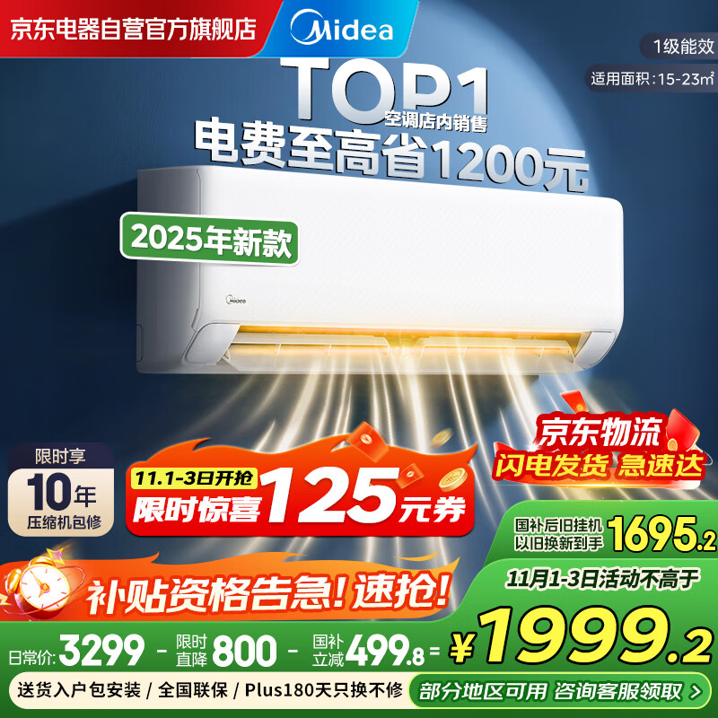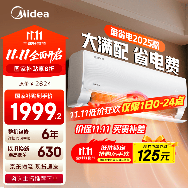 美的空调 爆款推荐 酷省电 新一级能效 变频冷暖 家电国家补贴入口 节能省电家用卧室挂机 以旧换新 大1.5匹 一级能效 酷省电2025款