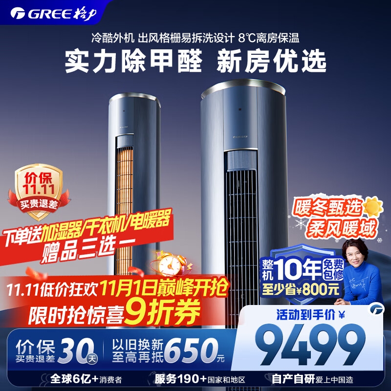 格力(GREE)3匹京淳 高效除甲醛 1级能效客厅立式柜机 健康风 冷酷外机空调KFR-72LW/NhDj1BGj 家电国家补贴