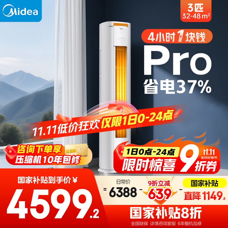 美的空调柜机 酷省电Pro 3匹 超一级能效 家电国家补贴20% 客厅空调立式 KFR-72LW/N8KS1-1P 无忧安装