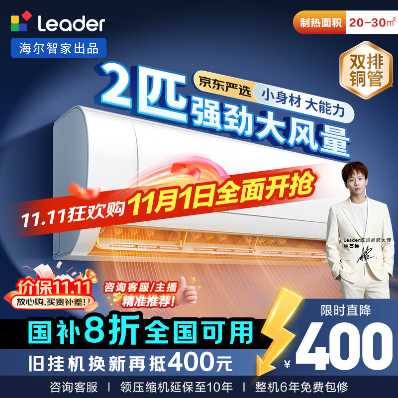 统帅(Leader)海尔智家出品 京东严选2匹空调挂机 超一级能效大风量 变频壁挂式KFR-48GW/19MJD81TU1国家补贴