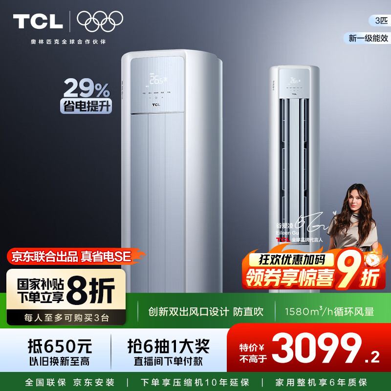 TCL空调 新一级能效 真省电SE柜机 节能空调冷暖 客厅立式大风量圆柱型家用空调 以旧换新国家补贴 3匹 一级能效 真省电SE柜机